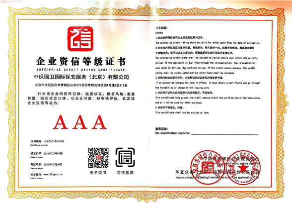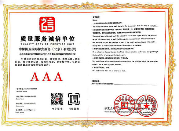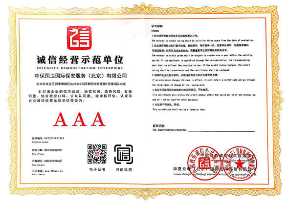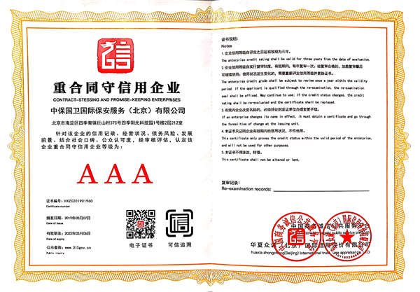中保國衛(wèi)國際保安服務(北京)有限公司,屬中保國衛(wèi)集團旗下子公司。能全方位的為大型客戶提供優(yōu)質的安保、押運服務,是集人防和技防于一體的新型正規(guī)化綜合安保押運服務企業(yè),提供人防、物防、技防、聯(lián)網(wǎng)報*、非武裝押運等安防相關的一站式服務。 公司在國內多省設立有分公司及分支機構,著重提升安全押運、智能技術押運及安全技術防范相關的服務,業(yè)務范圍覆蓋全國一、二線城市、港澳地區(qū)以及海外地區(qū)。安保方面主要為政府機構、金融機構、企事業(yè)單位、醫(yī)療衛(wèi)生、高等院校、工業(yè)園區(qū)、大型商場、高檔住宅、智能商務樓、大型活動提供門衛(wèi)、守護、巡邏、押運(非武裝)、安全檢查、保安特勤、私人護衛(wèi)、消防中控、安全技術防范、遠洋護航等全方位服務,同時面向國際市場,為中資企業(yè)在“一帶一路”沿線國家投資提供境外安保服務。 >> 更多內容 |